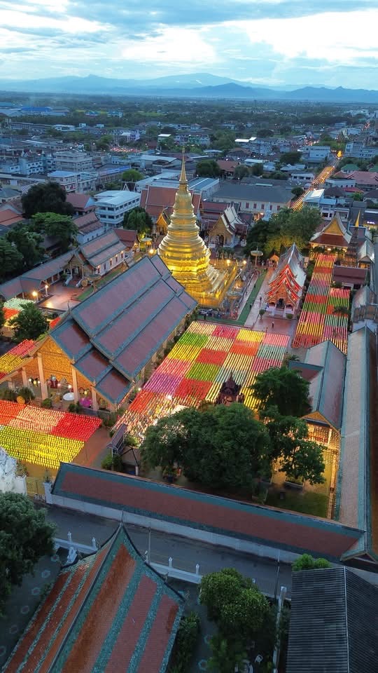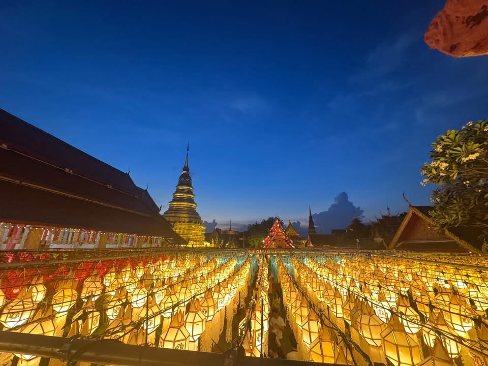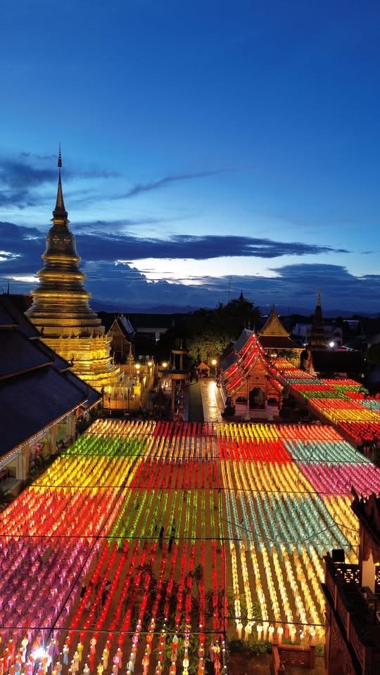 ทั่วบริเวณวัดพระธาตุหริภุญชัยวรมหาวิหาร อ.เมือง จ.ลำพูน เรืองรองไปด้วยแสงสีของ “โคมแสนดวง” ที่ชาวลำพูนร่วมกันแขวนเพื่อถวายเป็นพุทธบูชา สะท้อนความศรัทธาและความงดงามของประเพณีเมืองเก่าแก่แห่งนี้