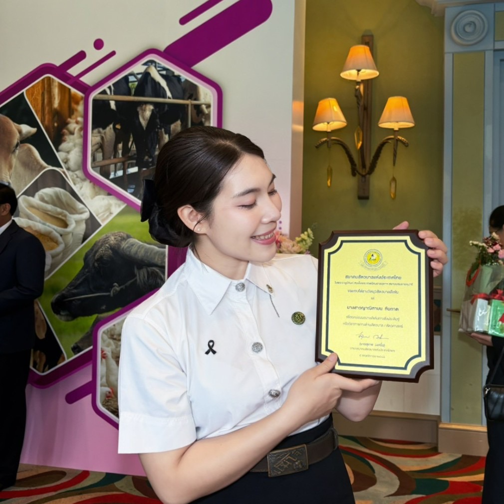 เมื่อวันที่ 5 พฤศจิกายน 2568 นางสาวญาณิศามน กันถาด นักศึกษาชั้นปีที่ 4 สาขาเทคโนโลยีการผลิตสัตว์ คณะวิทยาศาสตร์และเทคโนโลยีการเกษตร มหาวิทยาลัยแม่โจ้–แพร่ เฉลิมพระเกียรติ เข้ารับ “รางวัลยุวสัตวบาลดีเด่น ประจำปี 2567” จาก สมาคมสัตวบาลแห่งประเทศไทย ในพระราชูปถัมภ์ฯ โดยมี ดร.จรัลธาดา กรรณสูต องคมนตรี เป็นประธานในพิธีมอบรางวัล ณ โรงแรมมารวยการ์เด้น กรุงเทพมหานคร