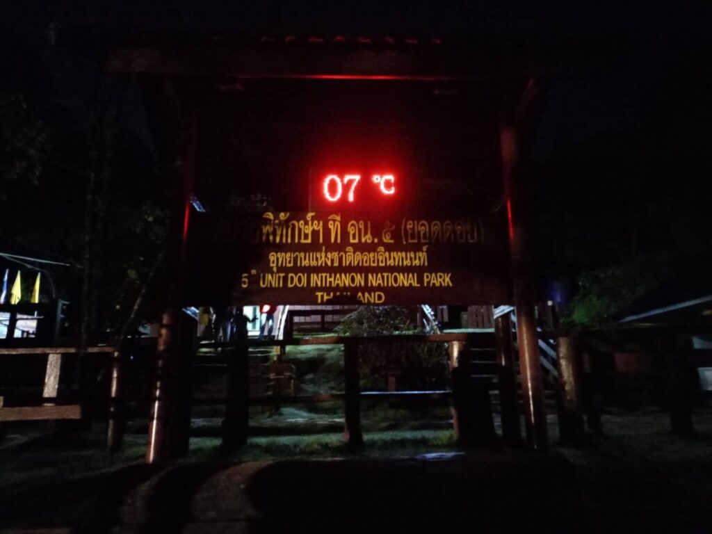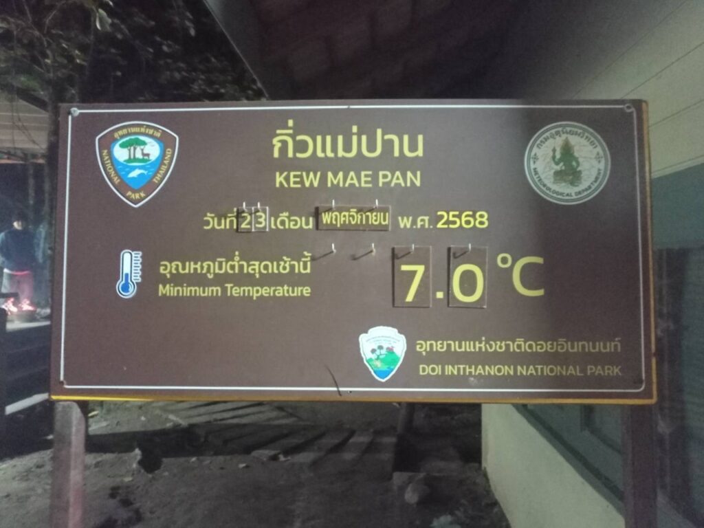เช้าวันอาทิตย์ที่ 23 พฤศจิกายน 2568 เวลา 07.00 น. ยอดดอยอินทนนท์และบริเวณกิ่วแม่ปาน มีอุณหภูมิลดต่ำลงมาถึง เลขตัวเดียว บรรยากาศเป็นไปอย่างเย็นยะเยือก ท้องฟ้าเปิดสวยใส เป็นใจให้นักท่องเที่ยวได้สัมผัสกับลมหนาวเต็มที่