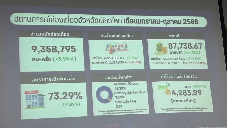 📊 ภาพรวมการท่องเที่ยวเชียงใหม่ ม.ค.–ต.ค. 2568