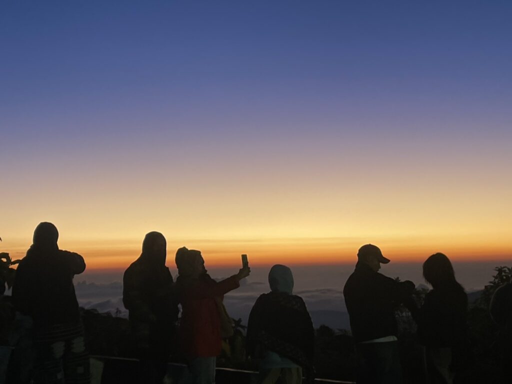 Many tourists headed up the mountain early this morning to witness the beautiful sunrise, enjoying the chilly winter atmosphere and scenic views, marking another stunning winter morning in Chiang Mai.