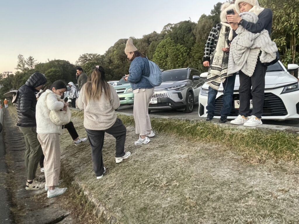 -จุดชมวิวกิ่วแม่ปานวันนี้มีแม่คะนิ้งไม่เยอะครับ อุณหภูมิยอดหญ้า – 0.3 องศา