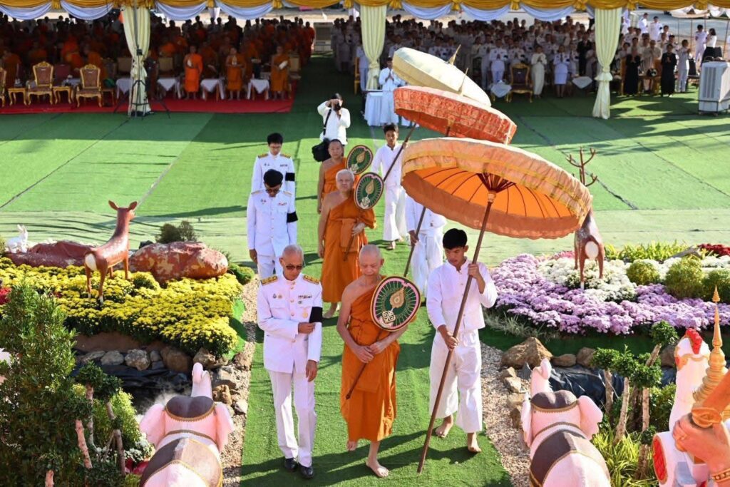🙏🙏 โอกาสนี้ นายอรรษิษฐ์ สัมพันธรัตน์ ปลัดกระทรวงมหาดไทย เชิญผ้าไตรประทานของสมเด็จพระอริยวงศาคตญาณ สมเด็จพระสังฆราช สกลมหาสังฆปรินายก ทอดถวายหน้าหีบศพ พระพุทธบาทพิทักษ์ พระสงฆ์ทั้งนั้นพิจารณาผ้าไตรบังสุกุล แล้วจึงเป็นประธานในพิธีพระราชทานเพลิงศพ โดยถวายความเคารพไปยังทิศที่พระบาทสมเด็จพระเจ้าอยู่หัวประทับอยู่ แล้วรับกระทงข้าวตอกดอกไม้วางที่จิตกาธาน และหยิบดอกไม้จันทน์จากเจ้าหน้าที่พิธีจุดไฟพระราชทานวางบนจิตกาธานแล้วเคารพศพ แล้วถวายความเคารพในทิศที่พระบาทสมเด็จพระเจ้าอยู่หัวประทับอีกครั้งหนึ่ง เป็นอันเสร็จการประกอบพิธีพระราชทานเพลิงศพ