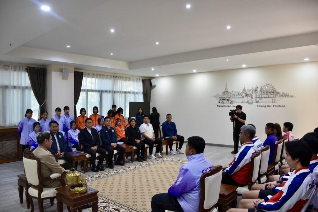 วันนี้ (2 กุมภาพันธ์ 2569) ที่ห้องรับรองชั้น 1 อาคารอำนวยการ ศาลากลางจังหวัดเชียงใหม่ นายอิทธิรัฐ สินารักษ์ ท่องเที่ยวและกีฬาจังหวัดเชียงใหม่ นำคณะนักกีฬานักเรียน นักศึกษา ผู้ฝึกสอน และเจ้าหน้าที่ เข้าพบ นายรัฐพล นราดิศร เพื่อรับโอวาทและกำลังใจ ก่อนเดินทางเข้าร่วมการแข่งขันกีฬานักเรียน นักศึกษาแห่งชาติ ครั้งที่ 45 ฅนบุรีรัมย์เกมส์ ณ จังหวัดบุรีรัมย์ โดยมีผู้แทนจากสำนักงานประชาสัมพันธ์จังหวัดเชียงใหม่ และหน่วยงานที่เกี่ยวข้องร่วมให้กำลังใจ