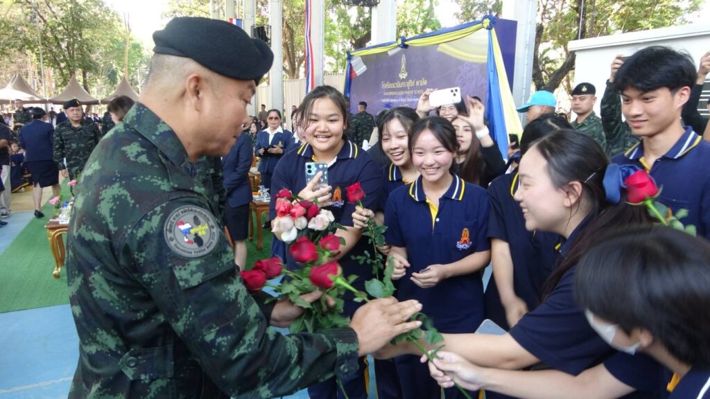 วันนี้ (16 ก.พ. 69) ที่โรงเรียนนวมินทราชูทิศพายัพ อำเภอแม่ริม จังหวัดเชียงใหม่ พลเอกบุญสิน พาดกลาง ที่ปรึกษาผู้บัญชาการทหารบก หรือ “อดีตแม่ทัพกุ้ง” เป็นวิทยากรพิเศษ ถ่ายทอดความรู้และประสบการณ์ตรงจากการปฏิบัติหน้าที่ในพื้นที่ชายแดน ภายใต้หัวข้อ “เรื่องจริงจากแนวชายแดน ภารกิจพิทักษ์อธิปไตยผืนแผ่นดินไทย” ให้แก่นักเรียนและนักศึกษาวิชาทหาร สังกัดมณฑลทหารบกที่ 33 จาก 32 โรงเรียนในจังหวัดเชียงใหม่และลำพูน รวมกว่า 3,500 คน