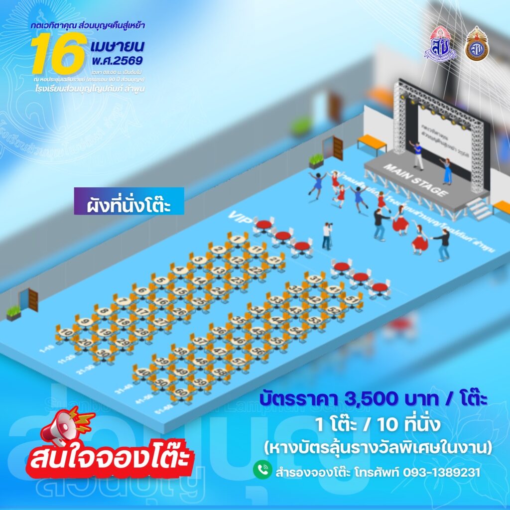 สำรองโต๊ะ โทร. 093-1389231 พร้อมลุ้นรางวัลพิเศษภายในงาน